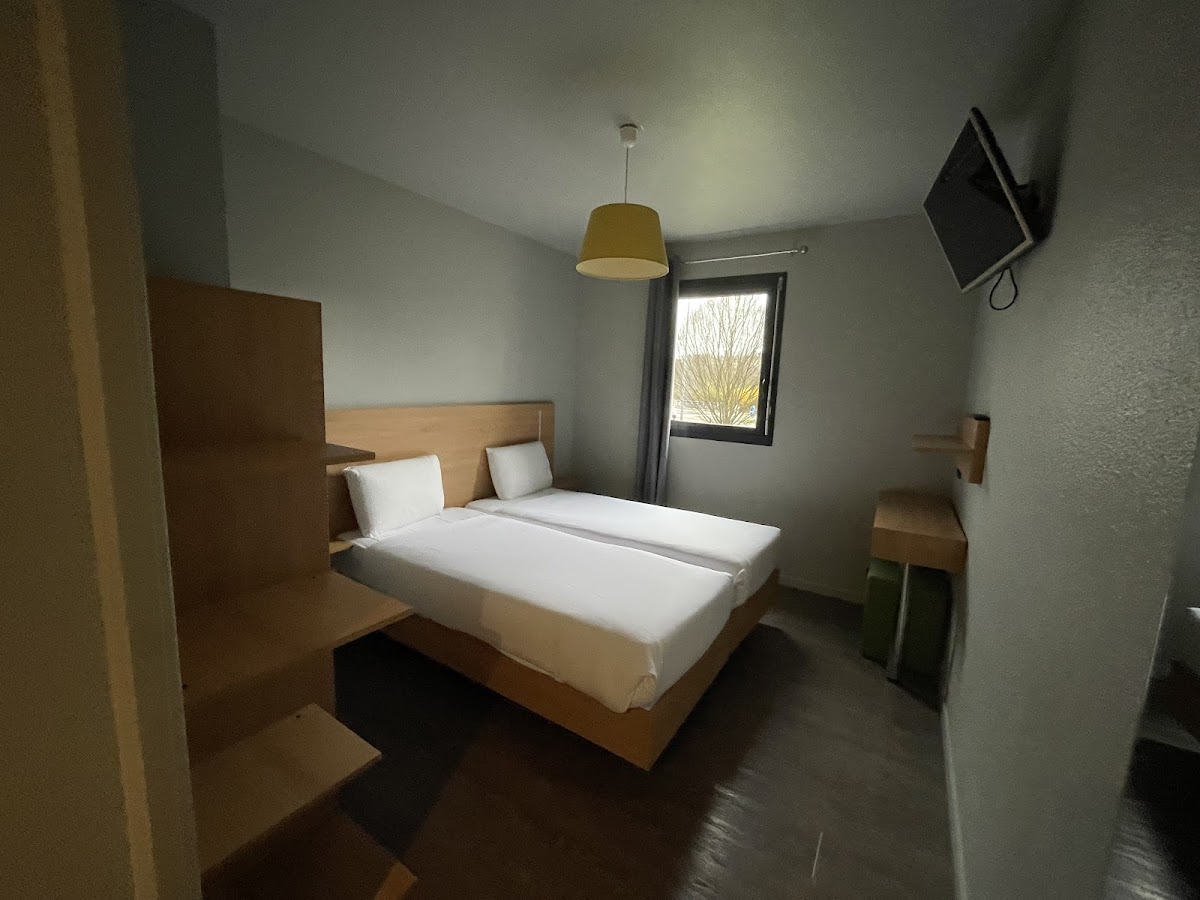 I booked the room one day in advance via Booking.com for a price where you could expect less. So I was surprised how good the Hotel was. The Room was super clean and exactly what I booked. It was very quiet and relaxing to spend the night here after 12 hours of driving. The receptionist spoke perfekt english and it took us maybe one and a half minutes to get our room key and code numbers. That was a very fast service. Also, we could reach the Hotel within 6 minutes from the highway.